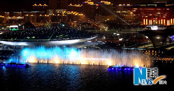 4月30日晚,中国2010年上海世博会开幕式大型灯光喷泉焰火表演在上海举行。新华社记者张明摄