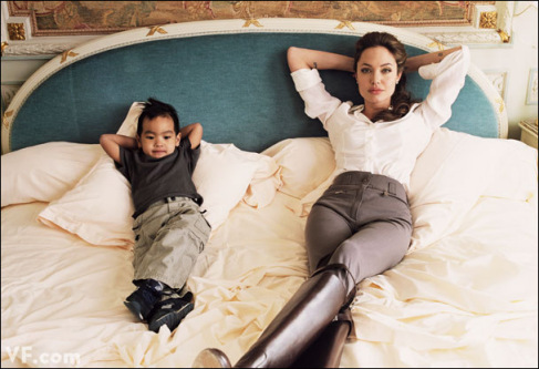 安吉丽娜·朱莉和自己领养的亚裔小儿子,两个人一样的姿势,默契十足,羡煞旁人。
