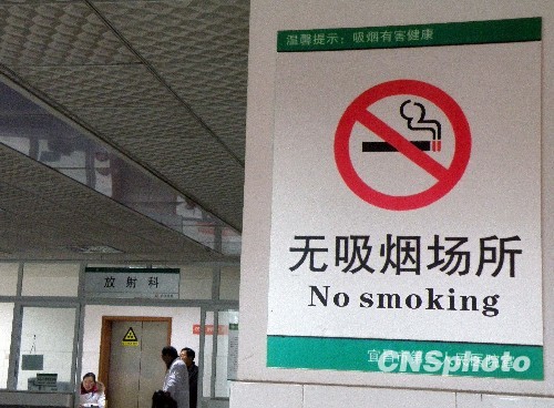 2009年12月7日,据卫生部健教处长李新华在“第三届中国控烟学术研讨会暨创建全国无烟医院项目经验交流会”上透露,全国医疗卫生机构将于2011年实现全面禁烟,在2010年,有一半医疗卫生机构将建成无烟机构。 中新社发 刘君凤 摄