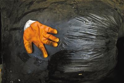 10月3日傍晚,清洁工王化金、张彦桃夫妇背着装有垃圾和塑料瓶的袋子下山。在山下将袋子放置在垃圾处理点后,王化金如释重负:“下班了!”