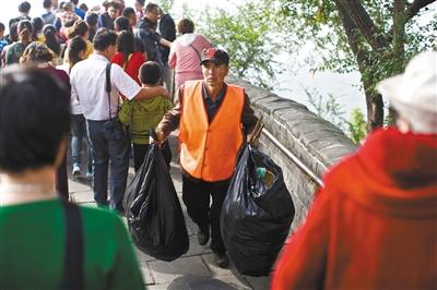 “天啊,怎么这么多垃圾”、“这得多重啊”……一路上,夫妇俩耳边不时传来游客的惊诧之语。