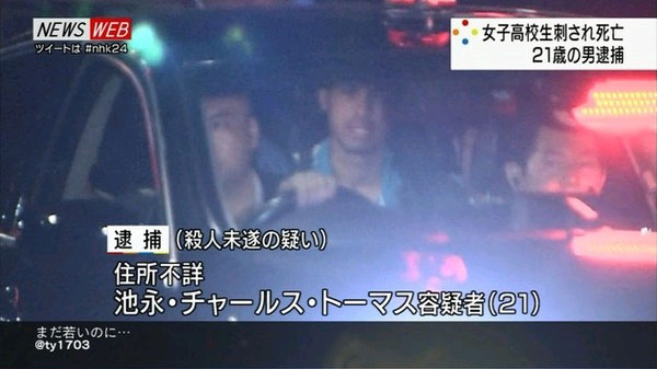 警方透露,嫌犯是21岁的池永查尔斯汤马士,疑似是日菲混血,地址、职业都不详。据了解,池永是铃木的前男友,已多次跟踪女方,铃木的父母还为此到附近警局备案,无奈还是发生憾事。