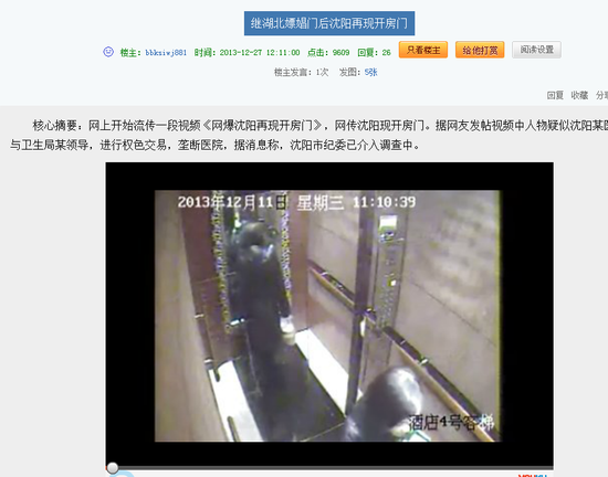 【沈阳市卫生局局长被责令辞职】经沈阳市纪委核实,12月26日网上出现的《沈阳再现开房门》信息中反映的男性为沈阳市卫生局局长闫石,女性为沈阳市妇婴医院院长李晨阳。根据有关规定,目前闫石已被责令辞职,李晨阳被停职,二人正在接受组织调查。网文中内容正在进一步核实。