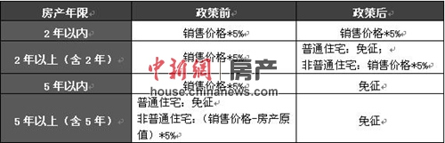 据财政部、税务总局联合同期出台的文件显示:“个人将购买不足2年的住房对外销售的,全额征收营业税;个人将购买2年以上(含2年)的非普通住房对外销售的,按照其销售收入减去购买房屋的价款后的差额征收营业税;个人将购买2年以上(含2年)的普通住房对外销售的,免征营业税。”