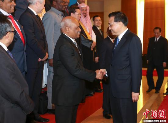 4月13日上午,中国国务院总理李克强在北京钓鱼台国宾馆出席亚洲—非洲法律协商组织第54届年会开幕式并发表主旨讲话。中新社发 刘震 摄