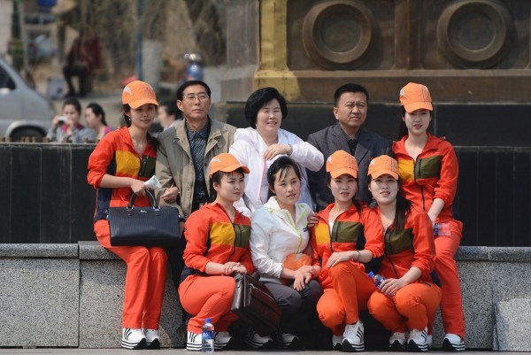 图为负责老师和留学生们在景区内合影。