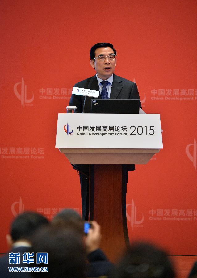3月21日,北京市市长王安顺在“中国发展高层论坛2015”经济峰会上发言。北京市市长王安顺21日透露,京津冀将加快推动形成生态的共同体,下一步将联合制定京津冀及周边地区大气污染防治中长期规划,共同构建区域生态安全的体系。新华社记者 李鑫 摄