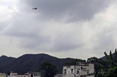 香港警方今早出动直升机,在沙头角莱洞村一带搜捕劫匪。 网络图片