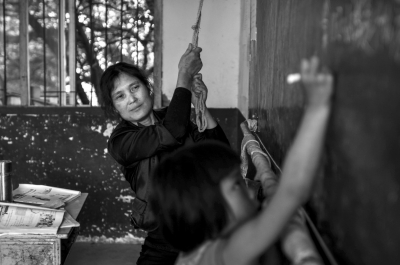 “同学们,今天我来教大家认识1000以内数字的读法……”昨天上午,上罗学校二年级教室传出一名女老师洪亮的声音。1米68的个儿,时而拽着麻绳,时而靠着扶杆,这位女老师很费力,却显得格外精神。她是湖北大冶上罗学校数学老师朱幼芳,今年49岁,从教31年,一直扎根乡村。2013年7月,朱幼芳被确诊为遗传性共济失调症,走起路来摇摇晃晃,吞咽也较困难。一旦病重,极有可能走向生命的终点。为给妻子上课提供方便,同在一个学校当体育老师的丈夫黄鹤鸣,为她安装了“拉力绳”,后来学校又为其加装了扶杆。对讲台带着一种情结,朱幼芳尽管患病,仍旧坚持上课,患病两年来从未请假。
