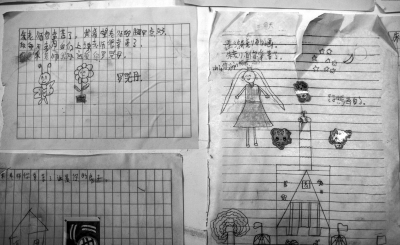 ④二年级的教室墙上,写满了学生对朱老师的祝福和图画。