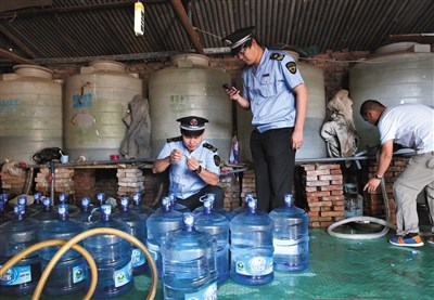 北京市食品药品稽查总队严查桶装水,黑作坊抽取井水经简单过滤直接灌装,每桶利润超10元