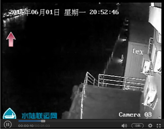 据朱光辉介绍,该视频和运行轨迹图是由3G船载视频监控系统获取的,目前长江上有1300多条船装载了该系统,可以拍摄到本船的所有信息,也可以拍摄到相关往来船只的信息。“东方之星”没有装载该系统。