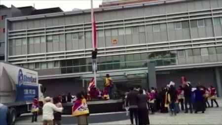 中国驻悉尼总领馆副总领事汤瑛说,22日中午,悉尼“藏青会”纠集60多人在总领馆门前示威。下午1时15分许,示威人群中的30余人乘隙突破澳大利亚警方设置的防线,冲入总领馆前院,向主楼玻璃门冲撞,并投掷石块。当天馆区内国旗因向万里同志致哀处于降半旗状态,一些“藏独”分子借机扯下了国旗。