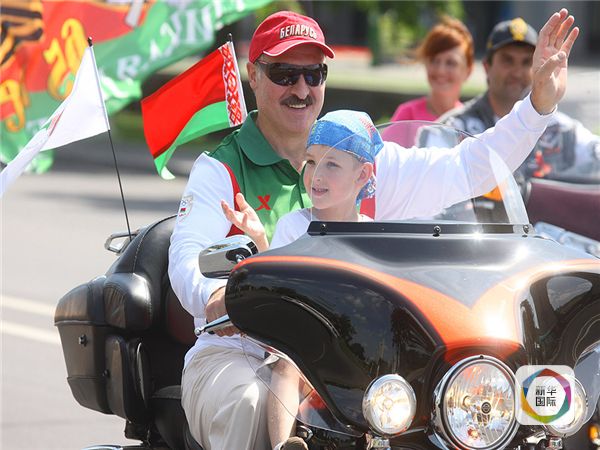 2009年,白俄罗斯总统卢卡申科接见“明斯克-2009”机车节的参赛选手时,也想亲自体验一把驾驭哈雷戴维森的超快感。然而,总统却在激情的体验中不自觉违反了交规--不仅自己未戴头盔,还让5岁、同样未戴头盔的儿子坐在油箱上。