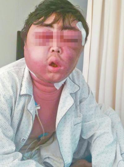 随后,被蚊子叮咬的部分出现了化脓的症状,他用手挤了挤,脸反而越来越肿,最后眼睛都肿得睁不开,嘴唇也肿得像香肠。他在当地打了几天点滴,没有效果,随后转诊陕西西安、山西运城等地。