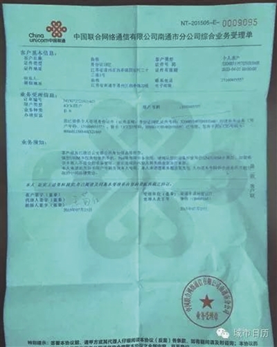 俞燕婶婶毛菊红出示的为俞燕办理手机业务的凭证。