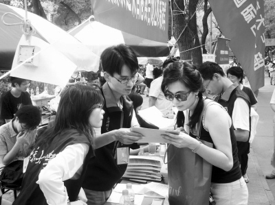 9月2日是北大07级新生入学报到的日子。一大早,在通向北大南门的主干道上,各个院系摆好各自的“摊位”,准备迎接新同学的到来。其中,北大港澳台办公室的“摊位”格外引人注目。在这里,台湾新生将得到校方为他们提供的生活指南材料,并会得到来自北京大学台湾研究会志愿者的悉心帮助。