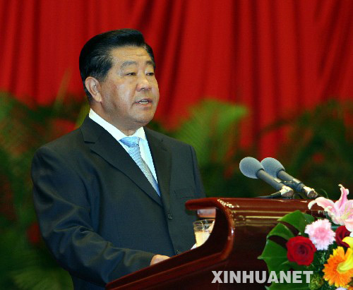 贾庆林在招待会上致辞。新华社记者刘卫兵摄