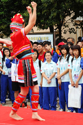 中新网9月29日电 据“中央社”报道,中华台北特奥代表团一行今天深入上海小区各家庭,参加特奥项目中的“小区接待”活动。主办单位安排了台湾少数民族舞蹈表演节目,台湾选手们看了感觉很亲切。 上海闵行区的君临天下花园小区为选手和教练们举行了小区欢迎仪式,当他们走进小区时,约有两百多位住户代表在道路两旁敲锣打鼓、欢呼拍手,迎接他们的到来。 在欢迎仪式中,特奥志愿者赠送鲜花给台湾选手和教练代表,并且还安排了各种文艺演出,有当地小学生表演腰鼓舞、小区居民表演海派秧歌和民间杂艺,让台湾选手们体会上海文化特色。