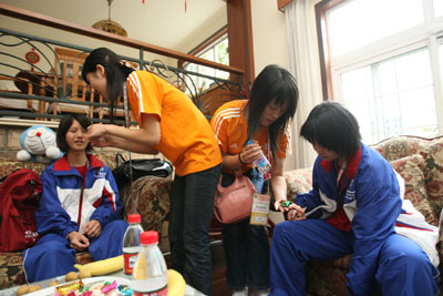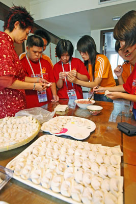 ![]() 上海小区准备了“高山青”歌舞表演。 ![]() 小朋友跳舞欢迎。 ![]() 志愿者一对一照顾台湾选手 ![]() 接待家庭准备了材料,让选手练习包馄饨。 |