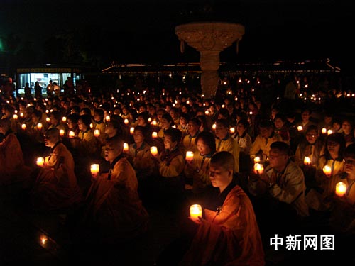 一时间,广场上烛光摇曳、梵呗声声,一派祥和。