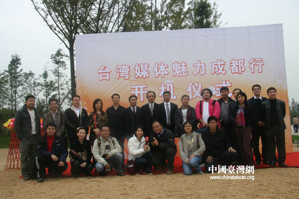 台湾媒体记者们和成都市领导在开机仪式前合影留念(摄影:陈宁)