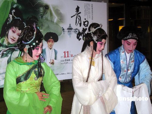 今天下午,台湾戏曲学院假台北“国家音乐厅”春水堂召开记者会,宣布由台湾知名编剧曾永义、中国大陆一级导演沈斌、作曲王世明联袂打造、台戏师生共同主演的新编京剧《青白蛇》将于下月十日、十一日在台北正式公演。