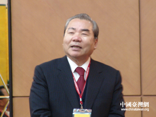 台湾海峡两岸和平统一促进会会长郭俊次在座谈会上发言 。(摄影:赵颖芳)