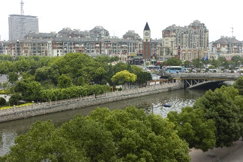 这是绿树环抱的昆山市区一角(6月7日摄)。2005年,江苏省苏州市下辖的昆山市率先达到江苏省全面小康社会指标体系,基本达到全面小康社会的水平。昆山的全面小康,核心是“富民优先”。到2005年底,昆山市人均GDP、城镇居民收入、农民人均纯收入这三项核心指标分别达到78553元、16809元和8519元。(新华社记者孙参摄)