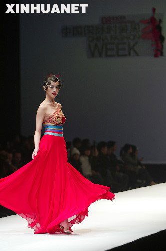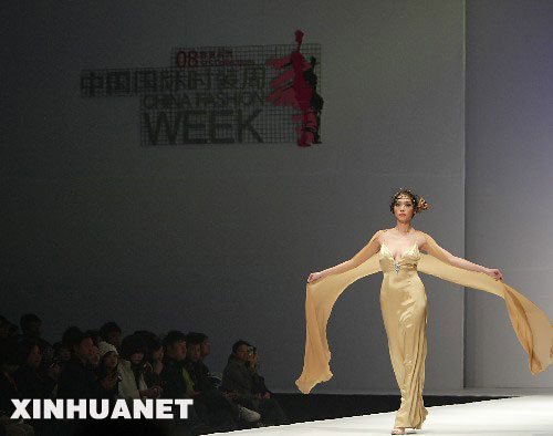 11月7日,模特在展示潘黛丽时装作品。 当日,中国国际时装周2008春夏系列发布之台湾设计师潘黛丽时装发布会在北京饭店举行。新华社记者 尹栋逊 摄