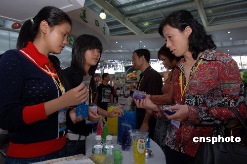 十一月十八日,台湾商品在海峡两岸花博会上十分抢手,大陆游客纷纷购买。当日,第九届海峡两岸(福建漳州)花卉博览会暨农业合作洽谈会在福建漳州花博园开幕。 中新社发 沈逸亭 摄