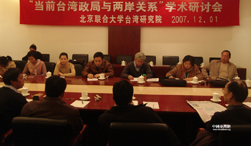 中国台湾网12月1日北京消息 由北京联合大学台湾研究院举办的“当前台湾政局与两岸关系”学术研讨会,12月1日在京举行。来自学术界的台湾问题知名专家及北京联大台研院的学者们一致认为,和平与发展仍是当前两岸关系发展的主题;陈水扁当局在岛内推行的“入联公投”是赤裸裸的“台独”分裂行径。