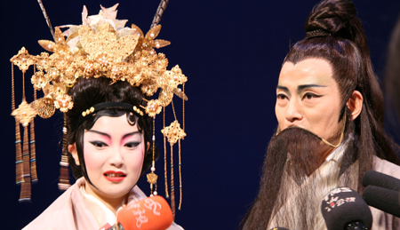 台湾当代传奇剧场十三至十六日演出新创昆曲风歌剧《梦蝶》,由吴兴国与昆曲名伶钱熠诠释庄子梦蝶中的灵魂角色。“中央社”图 李先凤 摄