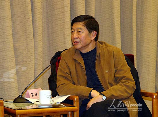 全国政协副秘书长兼新闻发言人、外交学院院长吴建民在座谈会上发言。