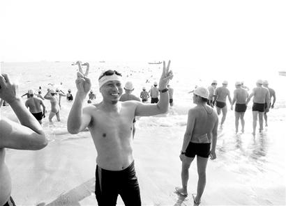 转眼间,时间过去了半个多小时,主办方规定的结束时间到了,还有不少人舍不得上岸,只好让救生艇出动去清场。岸上的观众则热情地等待着最后一名游泳者上岸,并报以热烈的掌声。(记者 叶秀月/文 吴晓平/图)