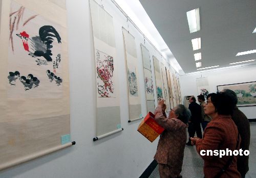 中新社福州一月十一日电 (张彩林)“二00八迎新春大型中国书画艺术作品展览”今日在福州开幕,来自北京、深圳、台湾等地的十余位海峡两岸资深收藏家精心收藏的近两百幅书画作品闪亮登场。
