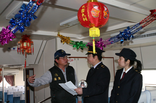 台轮金星船上张灯结彩春节味道正浓
