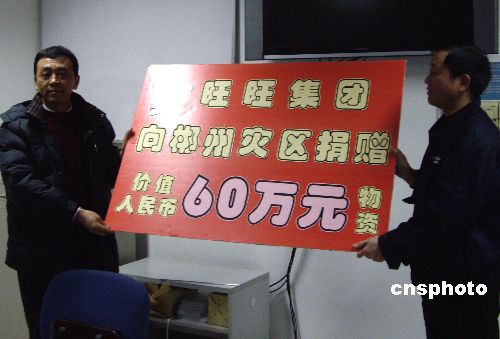 今年一月中旬以来,发生在大陆多个省份的严重雨雪冰冻灾害深深牵动着台湾同胞的心。台企旺旺集团在自身遭受了严重经济损失的情况下,紧急生产和调拨了价值四百一十五万元人民币的救灾物资运往各灾区,其中一批价值六十万元的食品、饮料安排给湖南受灾最为严重的郴州地区。
