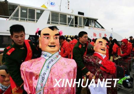 2月17日,来自马祖的演出道具运抵马尾。当日,57名马祖代表团演出及工作人员通过“两马”航线抵达福州马尾,将在元宵节前后参加“两马同春闹元宵”活动。来自马尾、马祖的同胞将相聚一起,用烟花、歌舞、灯会等活动庆祝元宵节。新华社记者 魏培全 摄