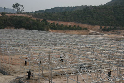 11日,笔者在该园核心区看到,5000平方米的标准玻璃温室已经基本完成钢架部分,计划在5月份建成投入使用。建成后漳浦台湾农民创业园标准玻璃温室将达到5万平方米。目前已有台湾专业培育蝴蝶兰的钜宝兰园等农户等着入驻。 (邱耀斌 摄影报道)