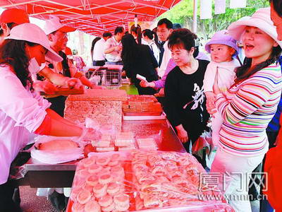 虽然艳阳高照,但偌大的白鹭洲音乐喷泉还是被闻香而来的饕客挤得水泄不通。2008海峡两岸(厦门思明)民俗文化节昨日下午正式拉开帷幕。