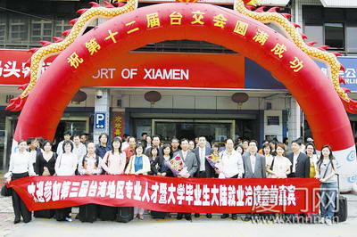 参加第三届台湾地区专业人才暨大学毕业生大陆就业洽谈会的嘉宾昨经厦金直航抵厦门。