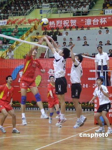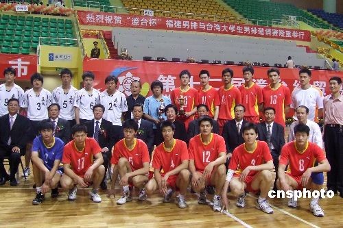 中新社漳州四月九日电 (沈逸亭 高敏)今天上午,福建男排和台湾大学生男排邀请赛紧随第十二届漳台经贸恳谈会开幕式后,在福建漳州华阳体育馆开赛。
