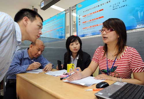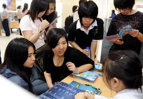 4月9日,几名在厦门集美大学就读的台籍学生在就业洽谈会上向招聘单位咨询就业信息。当日,第三届台湾地区专业人才暨大学毕业生大陆就业洽谈会在厦门市人才中心举办,来自大陆的80多家招聘单位提供了700多个工作岗位,吸引了200多名台湾地区专业人才和大学毕业生前来寻求职位。 新华社记者 姜克红 摄