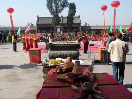 中新山西网4月24日电(王铁成 原坚) 23日,山西省万荣县的后土祠人山人海、春意荡漾,一派繁荣兴旺,生机勃勃的景象。来自宝岛台湾和大陆各地信奉后土的万余名群众,在这里共同举行了“戊子年海峡两岸后土圣母大典”活动。