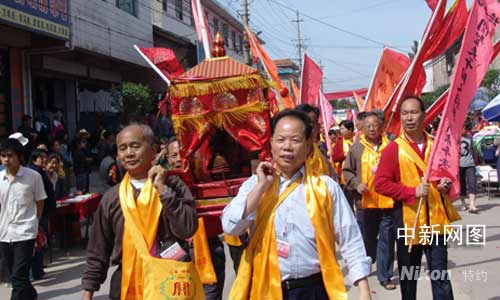 中新网5月14日电 (王铁成 李旭鹏)农历四月初八,是山西运城市解州镇古庙会,也是位于解州的关帝祖庙举办“关帝巡城”活动之日。当天上午,关帝圣像在锣鼓、令旗开道下,在来自福建等地及当地信徒的簇拥下,乘十六抬大轿巡游解州古城,所到之外,香烟袅袅,鞭炮起鸣,民众纷纷顶礼膜拜。正在山西平遥拍摄《大陆寻奇—山西篇》的台湾中国电视公司与中国华艺音像实业有限公司一行六人也闻讯前来,赶制专题节目。