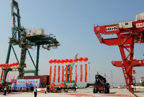 5月16日,福州马尾两岸直航货运专用码头——福州港中盈8号码头竣工正式投入使用。福州马尾是祖国大陆离台湾最近的国家级开发区和台商投资区,马尾两岸直航货运专用码头的建成,为加强两岸经贸往来,扩大两岸货运直航提供了便利条件。 新华社记者 张国俊 摄