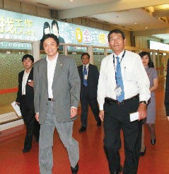 台湾“华航”副总谢世谦和长荣总经理陈欣德昨天一早亲自在大厅接机。东航代表团一到大厅,立刻坐上长荣安排的专车,在陈欣德陪同下前往长航航天、空厨、训练中心参观。
