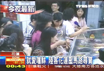 报道说,大陆考察团成员各个抢拍留念,当地业者奇招奏效,为花莲打响了大陆客观光第一炮。