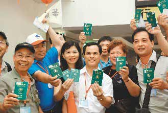 中新网6月20日电 台当局“行政院”昨天通过扩大“小三通”案,八十名台湾民众“首发团”19日下午从金门水头码头搭乘“新金龙号”客船前往厦门;游客兴奋地挥舞证件,大呼“爽!”